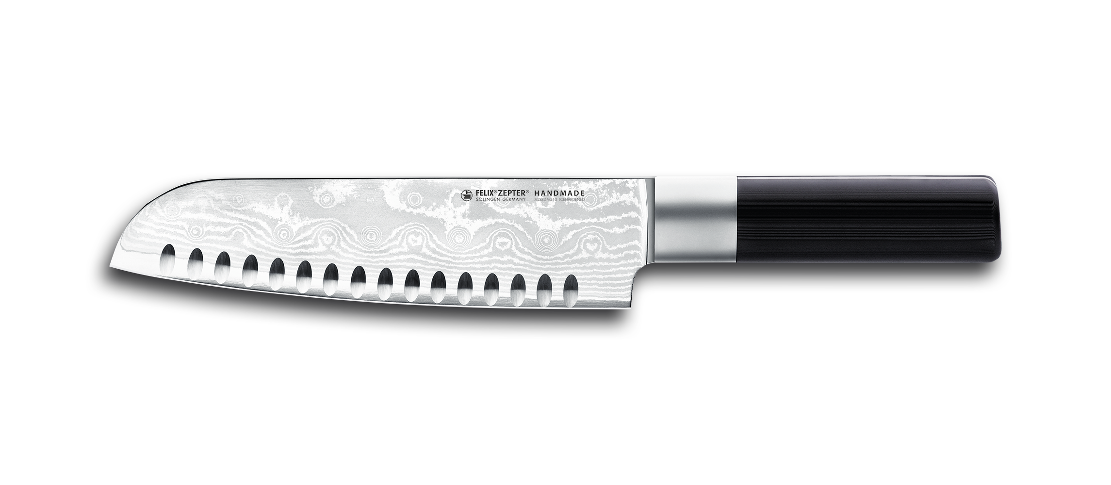 Wer einmal mit diesem Santokumesser gearbeitet hat, wird es nicht mehr aus der Hand geben. Das
