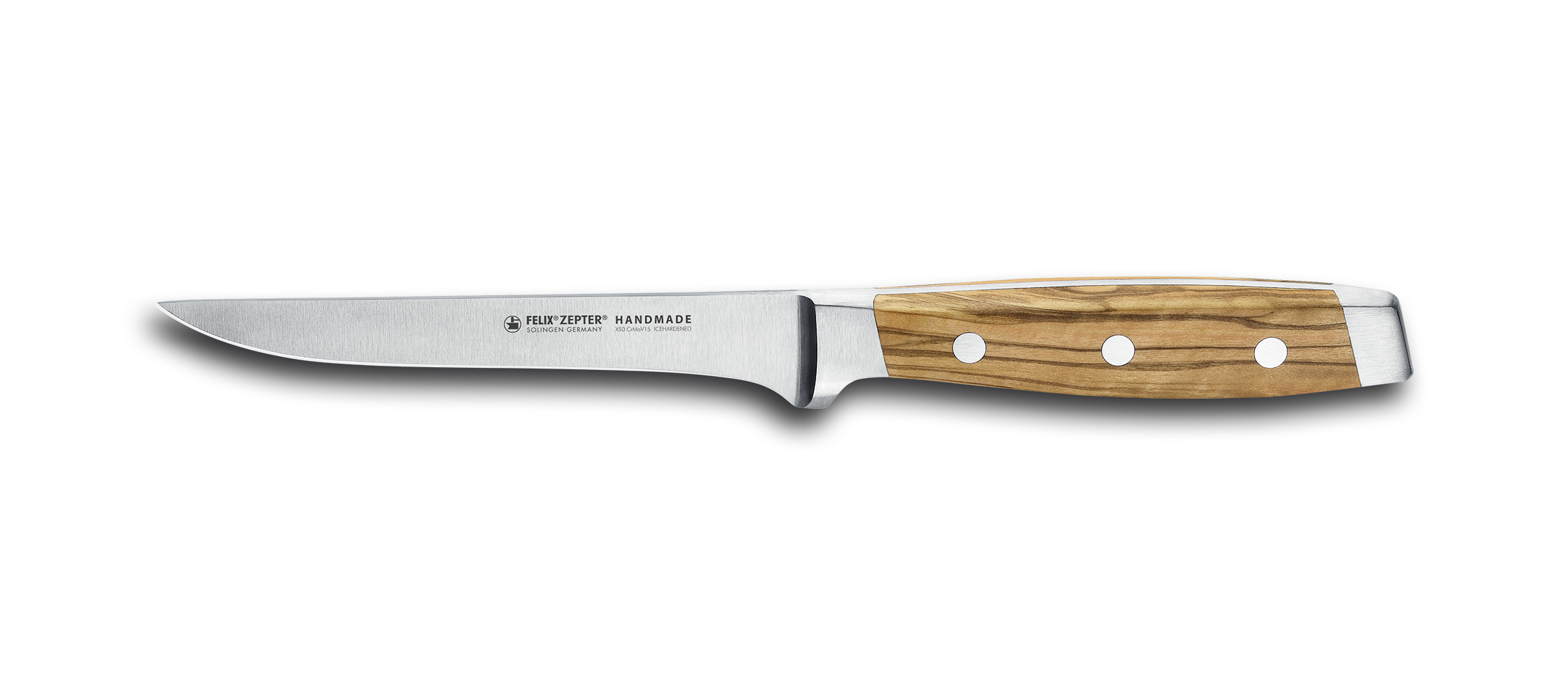 Fleisch ist in kürzester Zeit vom Knochen gelöst: Das Ausbeinmesser von FIRST CLASS WOOD macht es möglich. Mit der 13 cm langen Klinge können auch Fett und Sehnen problemlos entfernt werden. Das Enthäuten von Fleisch ist mit dem Ausbeinmesser ebenfalls schnell erledigt. Diese Arbeiten gehen mit diesem Spezial-Messer leicht von der Hand.