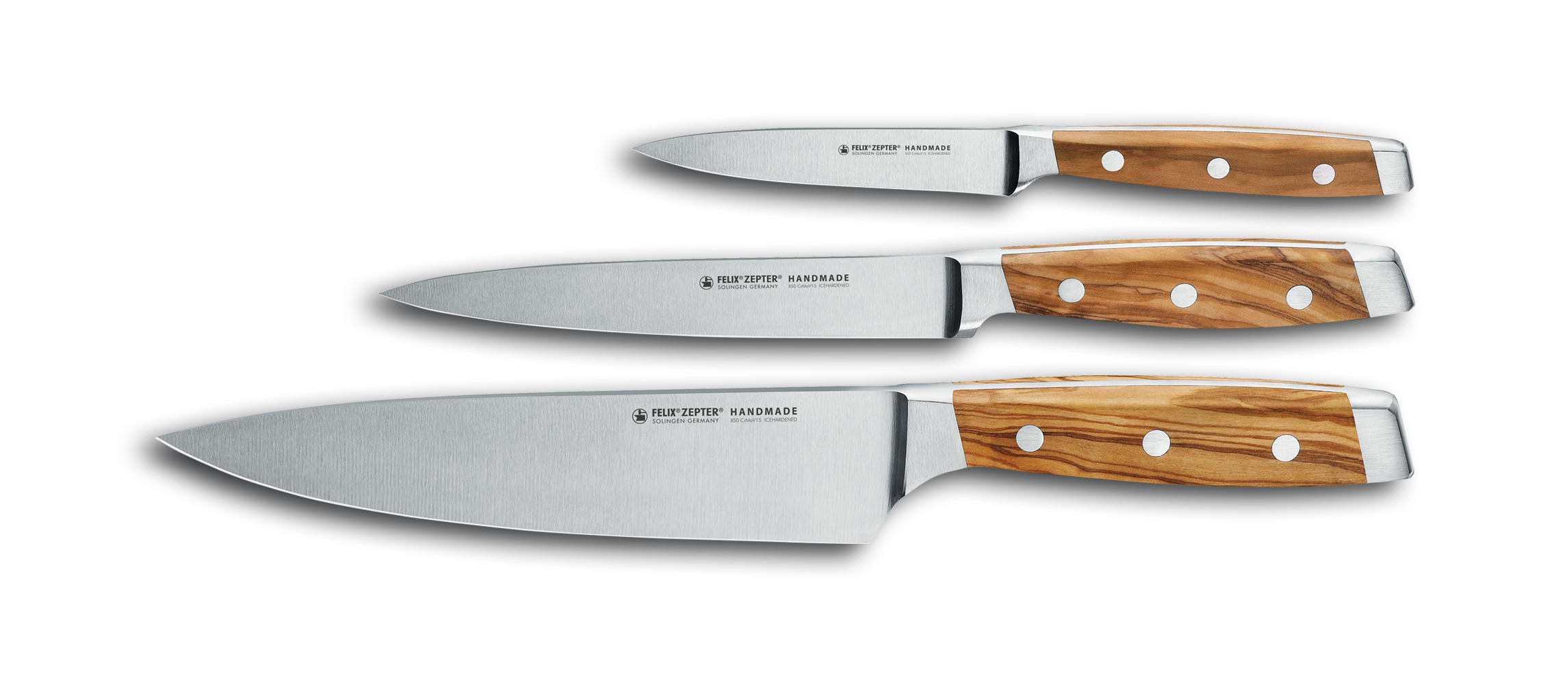 Das perfekte Starterpaket für Ihre Küche: Drei Messer für drei Arbeitsbereiche. Mit dem FIRST CLASS WOOD Spickmesser kann Gemüse geputzt und Obst geschält werden. Mit dem handlichen Spickmesser kein Problem. Das Zubereitungsmesser ist ein vielseitiges Allzweckmesser für den gehobenen Anspruch. Es schneidet Fleisch, Fisch und auch Gemüse. Das FIRST CLASS WOOD Kochmesser ist ebenfalls ein Universalmesser. Die 21 cm lange Klinge wird auch mit größeren Fleisch- und Fischstücken fertig.