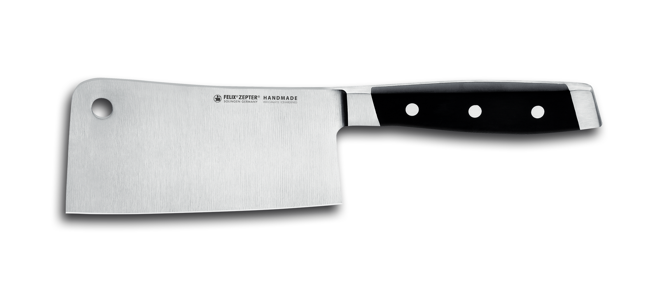 Das Hackmesser der Serie FIRST CLASS liegt gut in der Hand. Das ist bei seinem Einsatzgebiet besonders wichtig: Es zerteilt große Fleischstücke, schneidet Rippchen und durchtrennt Knochen. Damit das Arbeiten mit diesem praktischen Werkzeug leicht von der Hand geht, hat das Messer bereits ein höheres Eigengewicht. Dadurch müssen Sie weniger Kraft aufwenden. Die stabile, breite Klinge in rechteckiger Form erledigt die Arbeit fast von alleine.