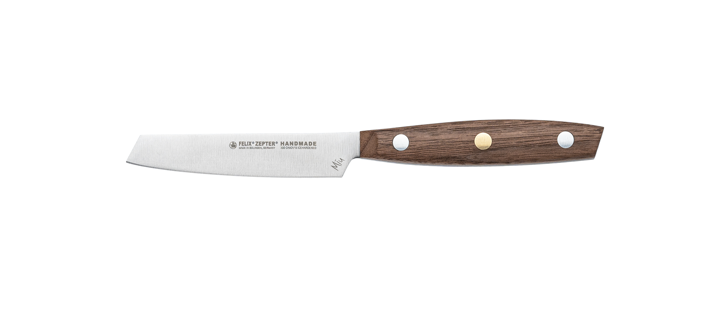 Eine 9 cm Klinge mit der Gemüse schälen und in Stifte oder Würfel schneiden wie von selbst funktioniert. Der Griff aus Walnuss und der traditionelle Solinger Klingenstahl X50 CrMoV15 verleihen dem Messer einen hochwertigen und modernen Look. Die Verpackung für das Gemüsemesser besteht aus Grasfasern und ist daher besonders nachhaltig, denn das Gras wächst schnell nach und schont Ressourcen wie Wasser oder Energie.