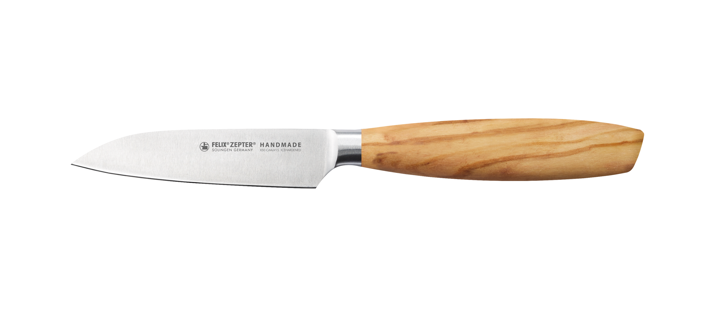 Das SIZE S OLIVE Gemüsemesser schneidet jedes Gemüse. Zucchini, Paprika, Gurke oder Karotten: Um das Schneidgut in Stifte oder Würfel zu verwandeln, hat die 9-cm-Klinge mit ihrer geraden Warte die perfekte Länge. Dieser Gemüse-Allrounder ist auch fürs Schälen geeignet.