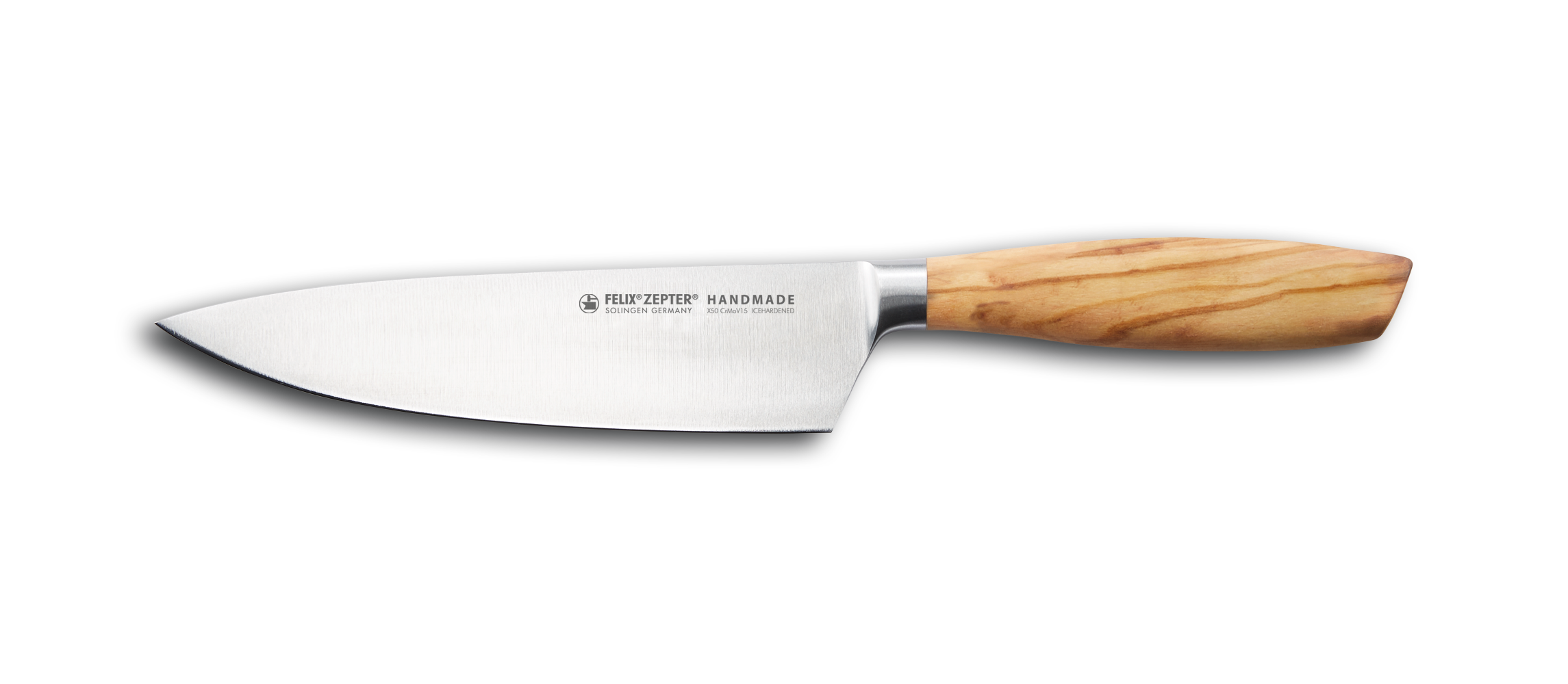 Das SIZE S Olive Kochmesser ist ein Allrounder, der nahezu mit allen Lebensmitteln fertig wird: Gemüse, Fisch und Fleisch sind schnell und einfach verarbeitet. Mit seiner 18 cm langen Klinge bleibt das Messer handlich und ist auch für präzises Arbeiten an feinerem Schneidgut geeignet. Der filigrane Griff aus besonderem Olivenholz liegt sehr gut in der Frauenhand.