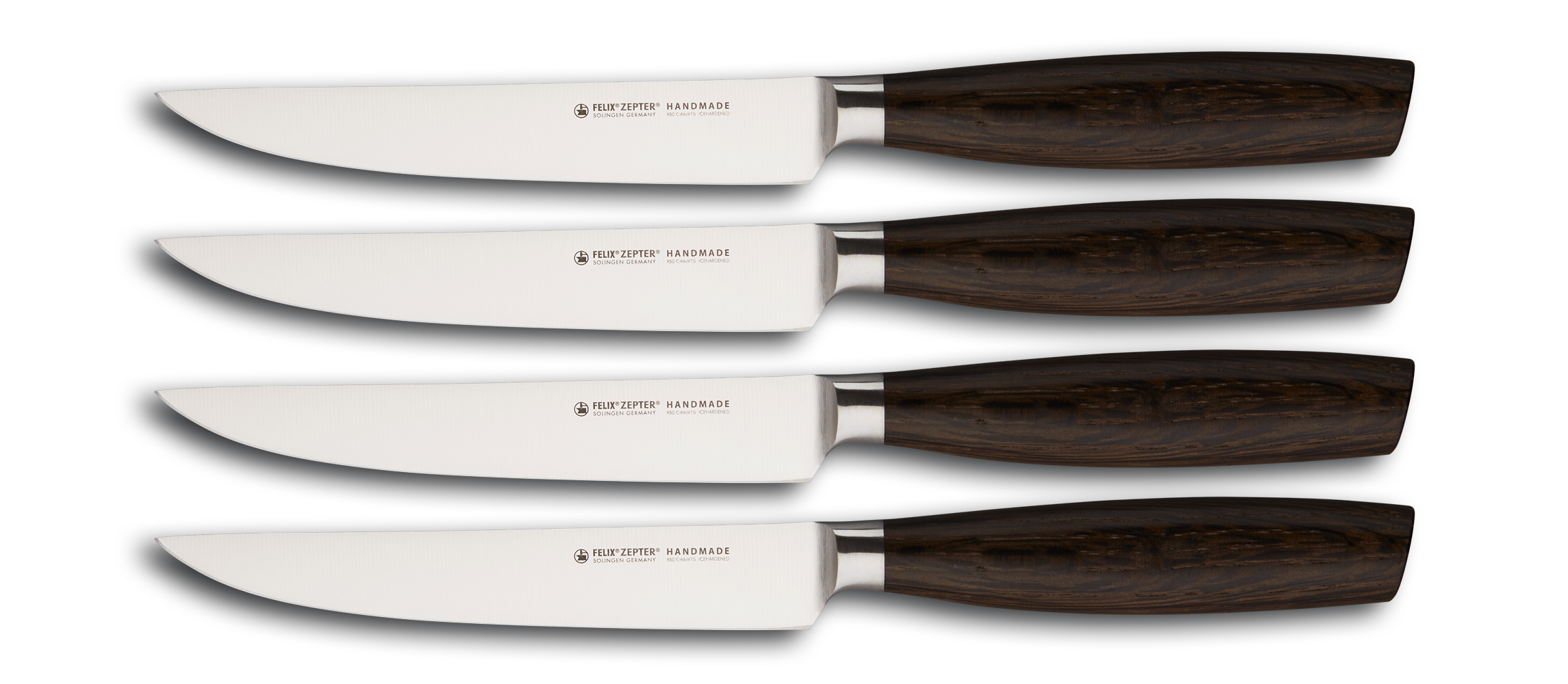 Steakfans werden dieses Messer-Set der Serie SIZE S SMOKED OAK lieben. Die Messer sind durch Ihren edlen und zugleich schlichten Griff ein echter Hingucker auf Ihrem gedeckten Tisch. Vielleicht suchen Sie noch ein Geschenk für einen Steakliebhaber oder BBQ-Fan? Dann haben Sie es jetzt gefunden.