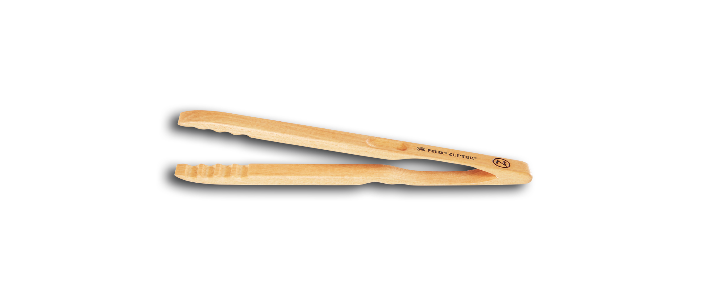 Edle Grillzange aus Buchenholz, geölt – im Geschenkkarton.